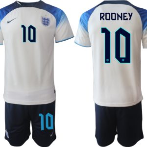 ROONEY #10 Herren England Fußball-WM 2022 Heimtrikot weiß blau Kurzarm + Kurze Hosen