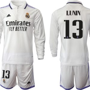 Herren Real Madrid Trikots 2022-23 Heimtrikot Weiß Fußballtrikots Set LUNIN 13