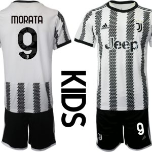 Kinder Juventus FC 2022-23 Heimtrikot Schwarz Weiß Kurzarm + Kurze Hosen MORATA 9