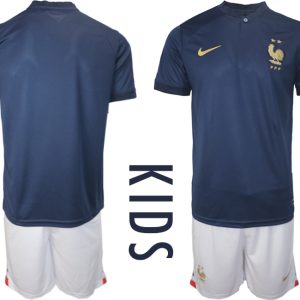 Günstig Frankreich Trikot WM 2022 Heimtrikot blau für Kinder