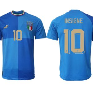 Herren Italien Trikots 2022-23 Heimtrikot Blau Kurzarm mit Aufdruck INSIGNE 10