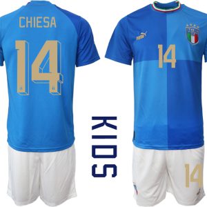 Italien Trikots für Kinder zum Fußballspielen 2022-23 in Blaue CHIESA 14
