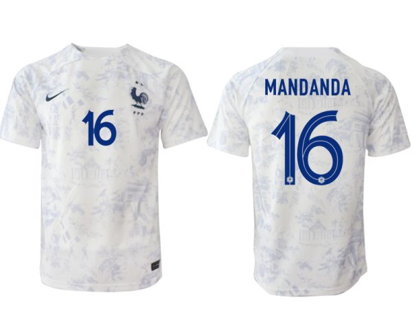 Fußballtrikot für Herren Frankreich Fußball WM 2022-23 Auswärtstrikot weiß Kurzarm MANDANDA 16