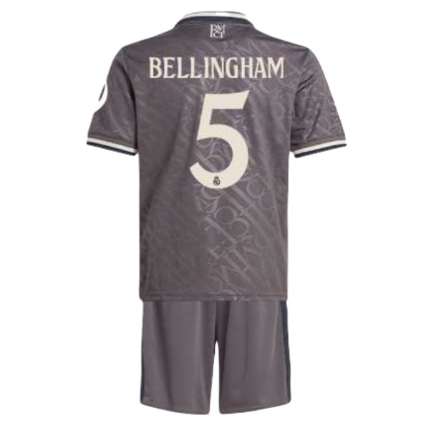 Das dritte Trikot von Real Madrid 2024-25 hat eine anthrazitfarbene Hauptfarbe (Charcoal), die mit einer „RMCF“-Prägung auf dem ganzen Trikot kombiniert wird und für einen einzigartigen Look sorgt.Das dritte Fußballtrikot von Real Madrid 24-25 hat einen Polokragen und Ärmelbündchen mit hellrosa (Putty Mauve)/dunkelgrauen Besätzen.