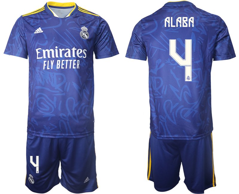 Real Madrid Herren Auswärtstrikot 2022 blau/weiß mit Aufdruck Alaba 4